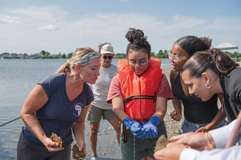 “The program was a full-week fellowship that introduced the youth to quahogging, clamming, learning boat safety, driving a boat, fishing, and an introduction to kelp and oyster farming in Portsmouth,” Ayuso says. “Our aim is for the youth to bring these skills with them to college, whether working in a marine lab, or working on a farm, or as a captain of a boat. Our goal is to introduce youth to professionals in these fields so that they can see examples of professional careers that they might want to pursue.”